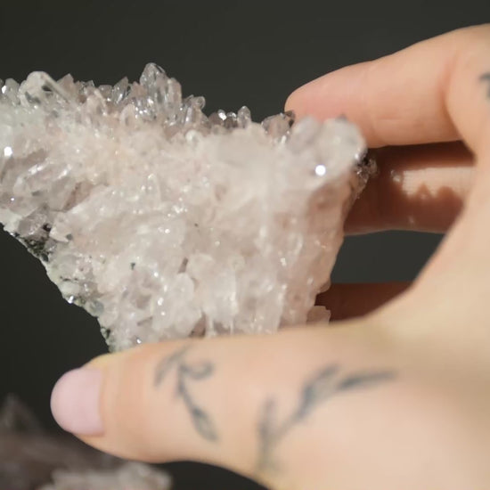 These Pink Lemurian clusters are breathtakingly beautiful with their water clarity and gorgeous blush pink hues that come from inclusions of lithium. This crystal is incredibly calming and is said to release the most loving, healing energy that can guide you in all areas of life. As a Lemurian quartz, it has incredibly high vibrational energy that you can welcome into any space.